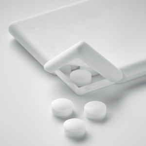 Dávkovač mentolek ve tvaru kreditní karty. 8 g mentolek.