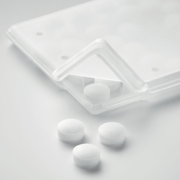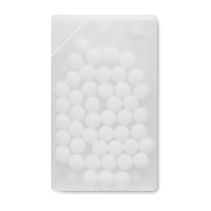 Dávkovač mentolek ve tvaru kreditní karty. 8 g mentolek.