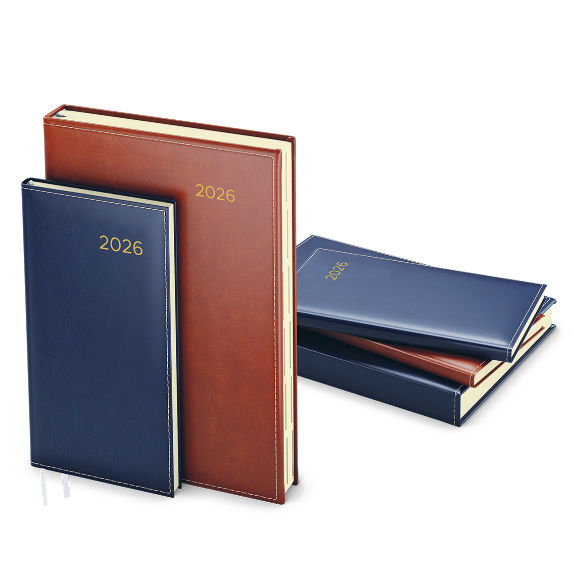 Denní diář A5 vyrobený z hnědé koženky s moderní zlatou ražbou roku. Diář, který povýší jakoukoli Vaši schůzku. Výjimečností tohoto diáře je, že soboty i neděle jsou na každé stránce zvlášť.