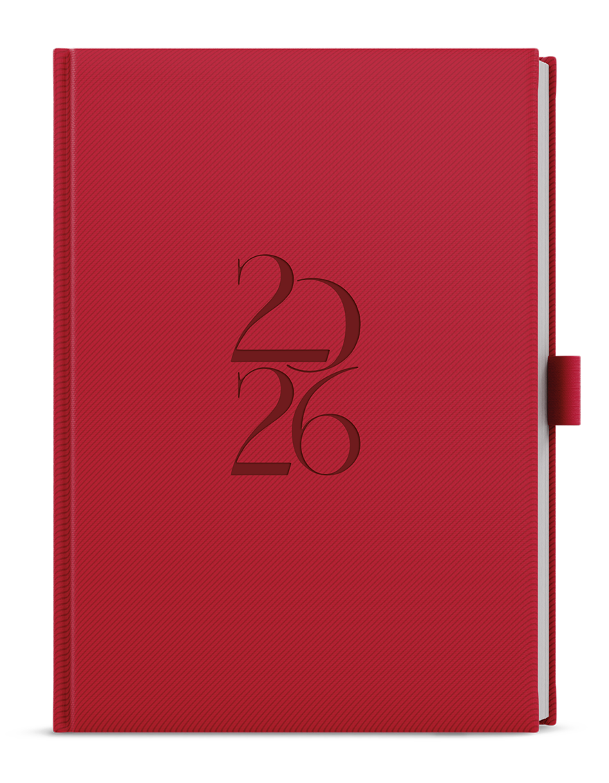 Denní diář z jemně strukturovaného materiálu s poutkem je vyráběný ve formátu A5 s prostorem pro plánování a poznámky.