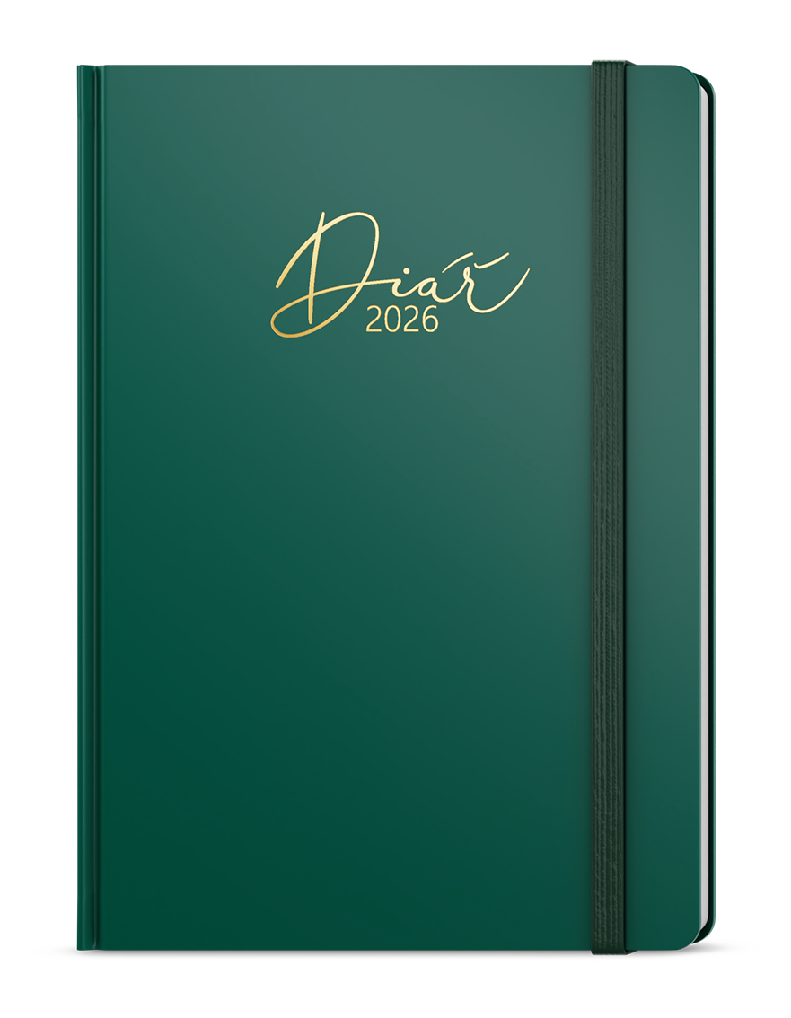 Denní diář A5 má krásnou populární barvu a efektní zlatou ražbu roku. Každý den na jedné straně Vám dá prostor mnoha poznámek a časového plánování.
