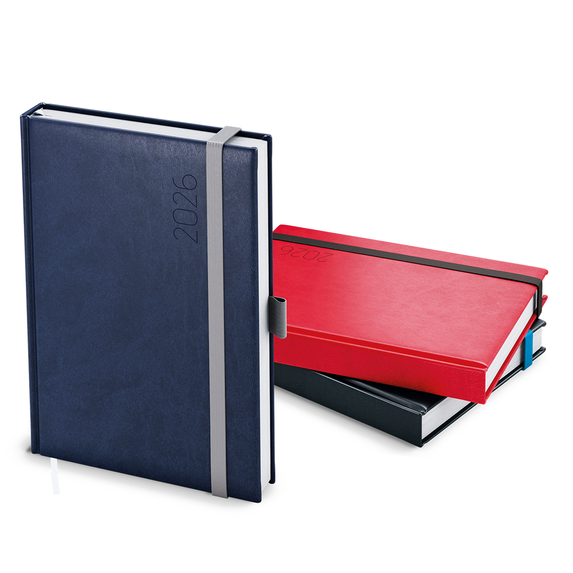 | Barva a materiál: | jemný hladký materiál, ražba roku, jednostranná pěnová výplň desek, šitá vazba V8, stužka, kapitálky, perforované rožky, mapa ČR a SR, vlepená kapsa, gumička a poutkoofset, 70g/m2 | ||||||||||||||
