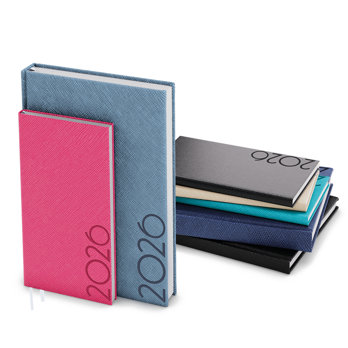 Neobyčejný denní diář s lesklým povrchem ze strukturovaného materiálu v černé barvě je vyráběný ve formátu A5 a má velký prostor pro poznámky a plánování.