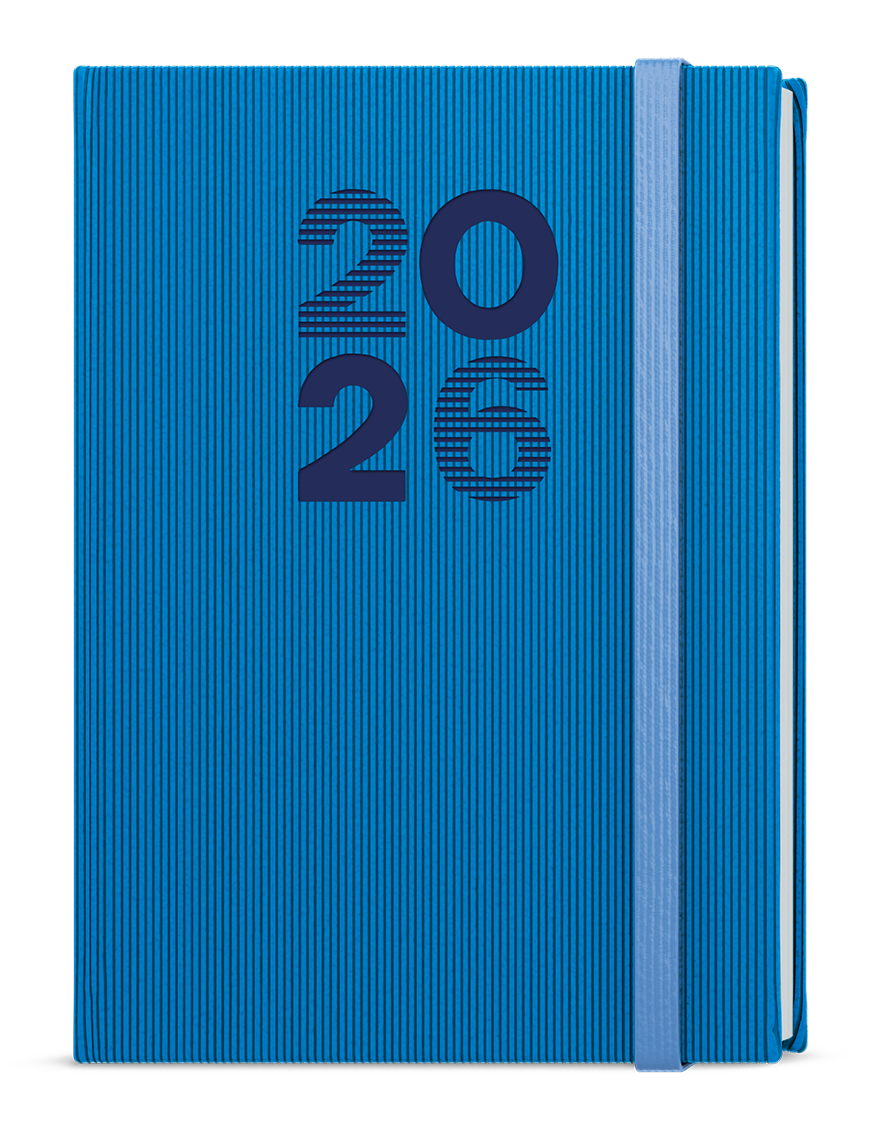 Denní diář formátu A5 vyrobený ze strukturovaného materiálu v oblíbených barvách a s gumičkou. Oblíbená grafika vnitřního bloku Vám pomůže účelně plánovat Vaše dny.