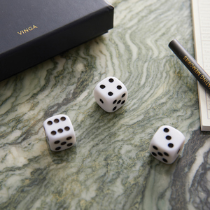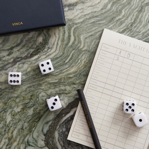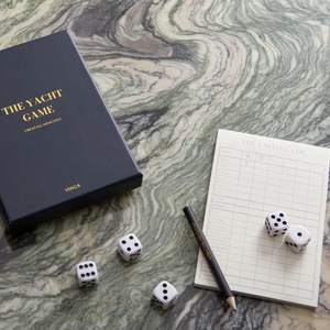Full house, postupka nebo yatzy? Jedná se o hru s pěti kostkami ve stylové krabičce se zlatým potiskem. Díky krásné krabičce ji můžete darovat nebo použít jako pěkný detail na konferenčním stolku.