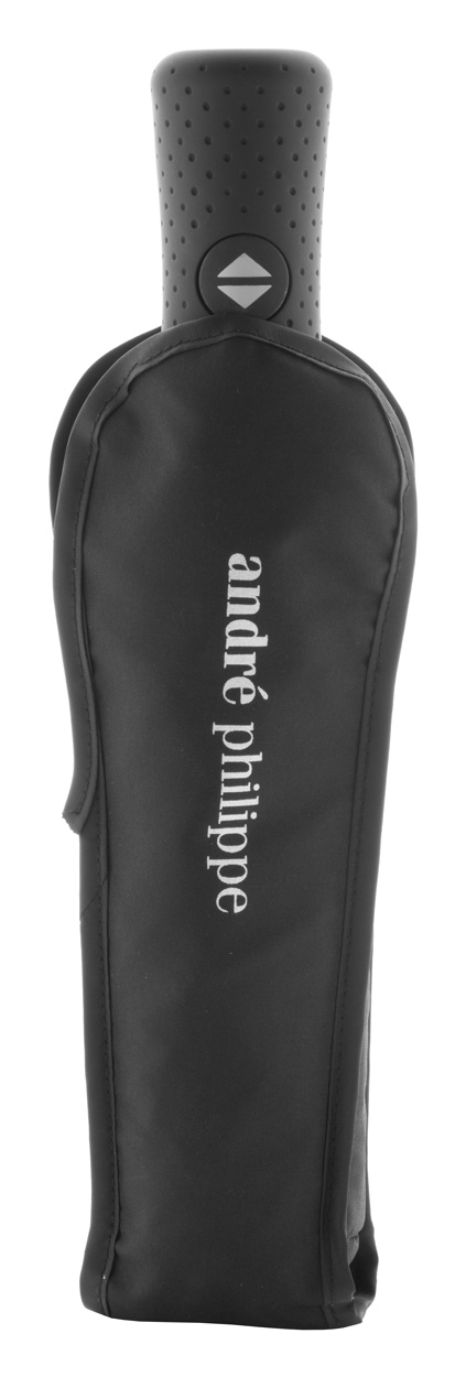 Plně automatický (otevřít/zavřít), větru odolný skládací deštník s 8mi panely, pogumovanou rukojetí, kovovou konstrukcí a tyčkou. Materiál 190T pongee. V obalu s logem André Philippe.
