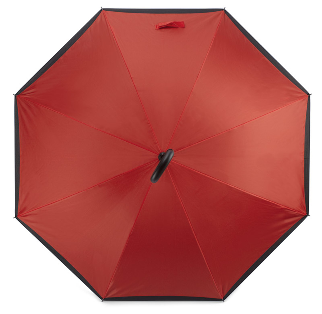 Revolutionární REVERS deštník se odlišuje svým tvar a funkčností. Pomocí reverzního pohybu při zavírání deštníku zůstává voda, která se na kupoli usadila, uvnitř deštníku, takže uživatel a okolní oblast zůstávají suché. Navíc deštník má výjimečnou rukojeť, která je velmi užitečná, když potřebujete něco udělat oběma rukama.