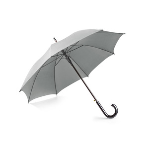 Automatické otevírací deštník s křivkovou dřevěnou rukojetí. Otevřený deštník má průměr 103 cm a délka složeného deštníku je 88 cm.