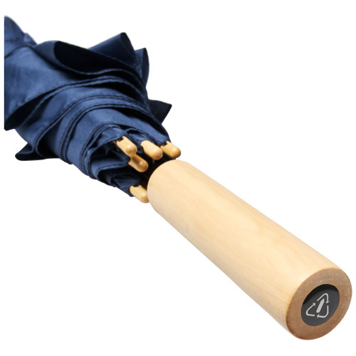 Deštník s automatickým otevíráním s kupolí z recyklovaného PET polyesteru ponžé. Odolná kovová tyčka, vysoce kvalitní rám s laminátovými žebry, které nabízí flexibilitu ve větrných podmínkách. Společně s dřevěnou rukojetí, hroty a kupolí z recyklovaného PET polyesteru ponžé nabízí udržitelnou volbu. K dispozici v široké řadě moderních barev s velkou ozdobnou plochou na každém z panelů.