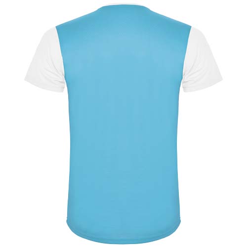Snadno schnoucí, technická a prodyšná látka. Kulatý výstřih. Kombinace dvou polyesterových látek na zádech a ramenou. Látka „ptačí oko“ vpředu a prodyšná 3D síťovina na zádech. Látka připravená pro absorpci vlhkosti. Ozdobný klikatý zadní steh na bocích a na ramenou. Zadní vzor je mírně delší. Odnímatelný štítek.