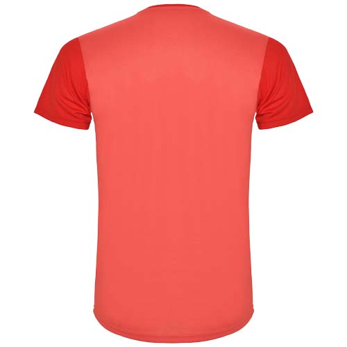 Snadno schnoucí, technická a prodyšná látka. Kulatý výstřih. Kombinace dvou polyesterových látek na zádech a ramenou. Látka „ptačí oko“ vpředu a prodyšná 3D síťovina na zádech. Látka připravená pro absorpci vlhkosti. Ozdobný klikatý zadní steh na bocích a na ramenou. Zadní vzor je mírně delší. Odnímatelný štítek.