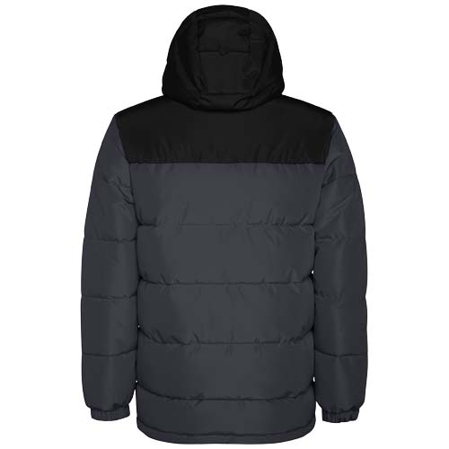 Polstrovaná bunda s kapucí. Přední zip krytý légou. Chránič brady. Dvě boční kapsy na zip. Elastické manžety.