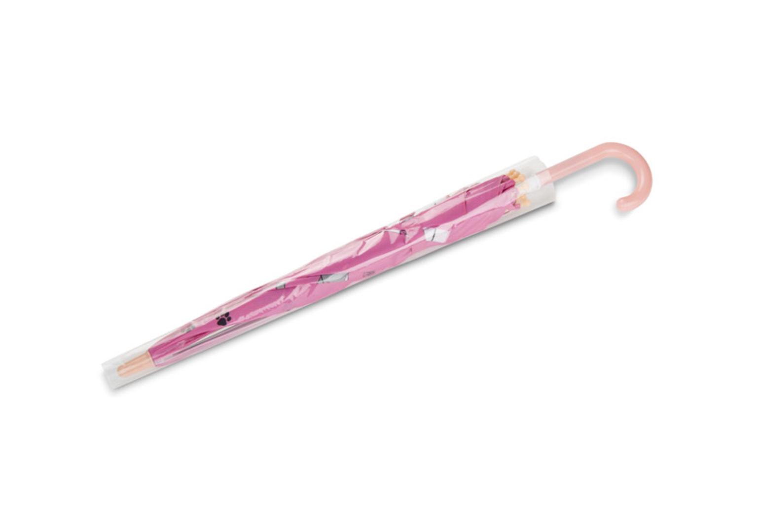 Dětský deštník MIAU je lehký a odolný model navržený s ohledem na ty nejmenší. Je vyroben z polyesteru 190T a má konstrukci ze skelných vláken a kovu, která dobře odolává poryvům větru. Osm panelů zdobí veselá grafika koček a tlapek a průhledná část stříšky usnadňuje dítěti výhled při chůzi. Deštník se otevírá ručně a zaoblené konce a plastová rukojeť zajišťují bezpečnost a pohodlí. Ideální pomůcka pro dětské značky nebo dětské pokoje.