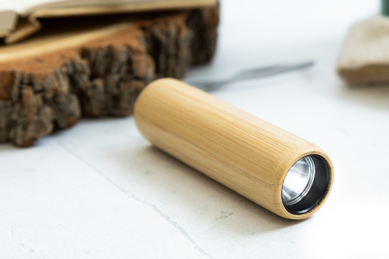Bambusová baterka s vestavěnou USB dobíjecí baterií (320 mAh), 1 LED světlem a poutkem na přenášení. Se 3 režimy svícení. Včetně USB nabíjecího kabelu.