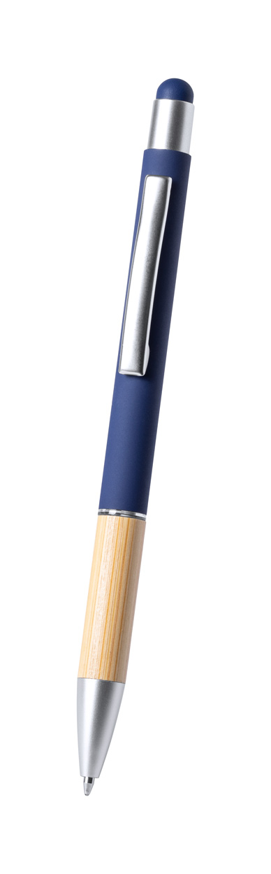 Hliníkové kuličkové a dotykové pero s bambusovým uchopením a matným povrchem. S modrou náplní.