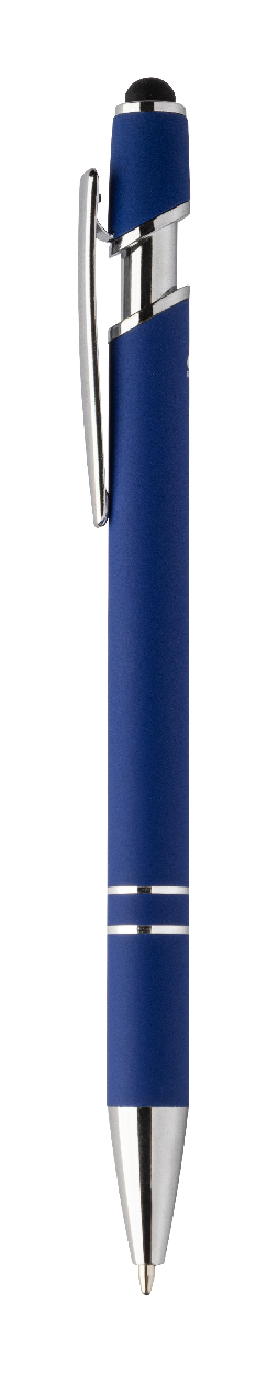 Kuličkové pero a pero pro dotykovou obrazovku z recyklovaného hliníku s pogumovaným tělem a chromovanými detaily. S modrou náplní.