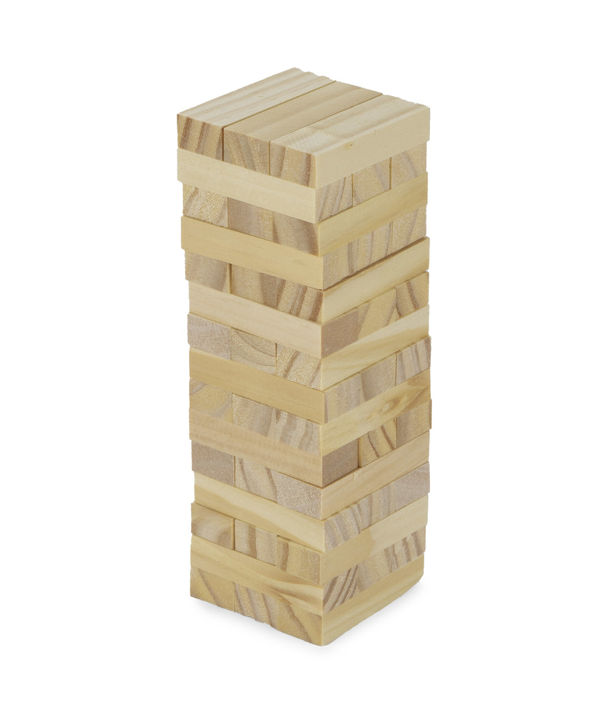 Zručnostní hra BRICKS vyrobená z borovicového dřeva s 45 kamenů zabalených do hnědé krabičky. K sadě je přiložen pytlík, který se uzavírá pomocí stahovací šňůrky z hmoty non-woven.