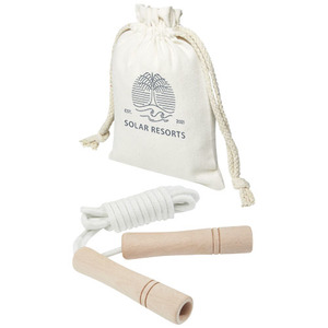 Spojte zábavu a cvičení s tímto švihadlem pro dospělé. Lano je vyrobeno z bavlny a rukojeti z bukového dřeva. Délka lana je 310 cm, což umožňuje snadné přeskakování pro dospělé do délky 195 cm. Rukojeti (12 × 2,5 cm) jsou ergonomicky tvarované a poskytují pohodlné uchopení. Dodáváno s bavlněným úložným pouzdrem (18 × 13 cm). Jako možnost udržitelné dekorace se doporučuje laserové gravírování.