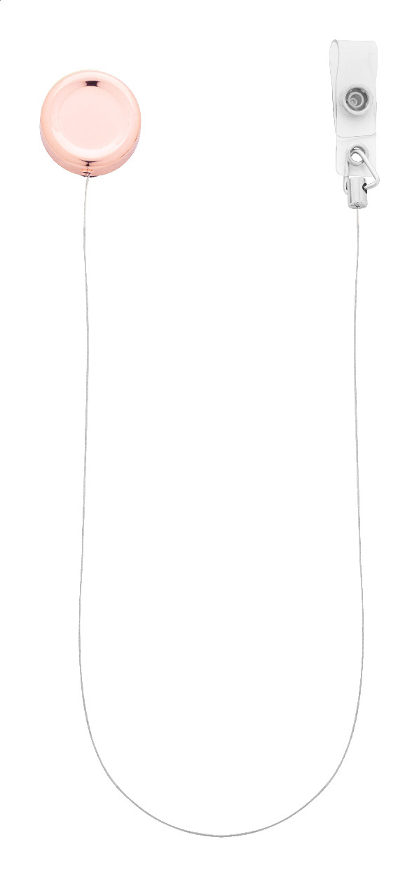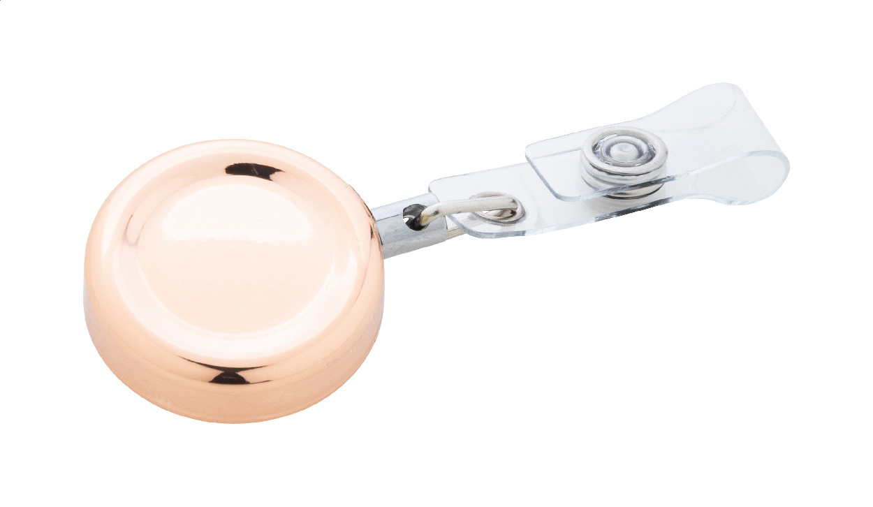 Exkluzivní kovový držák na ski pass s vysoce lesklou metalickou povrchovou úpravou. Zapínání na druk, teleskopická šňůra a kovová spona.