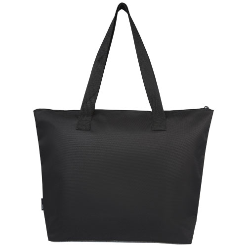GRS recyklovaná dvoubarevná nákupní taška Reclaim na zip je z vnější strany vyrobena ze 100% recyklovaných materiálů GRS a je vybavena přední kapsou a hlavní přihrádkou na zip. Skvělá udržitelná alternativa k plastovým nákupním taškám. Délka rukojeti je 25 cm.