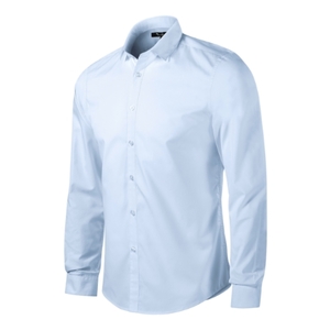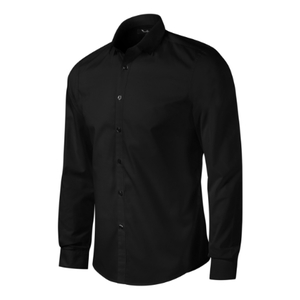 projmutý střih s bočními švy, dvojité sedlo a záševky na zadním dílu, dvoudílný košilový límec, vyztužené špičky límce, přední kraje začištěny légou, dlouhé rukávy s šikmou manžetou na 2 knoflíčky, perleťové knoflíčky v barvě materiálu (1 náhradní navíc), tvarovaný dolní kraj