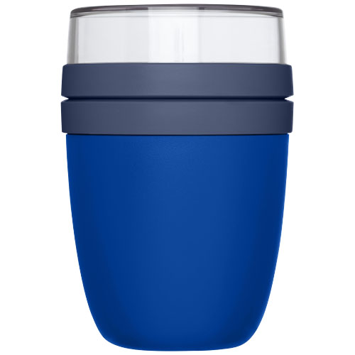 Obědová nádoba obsahující dvě různé přihrádky k uložení různých ingrediencí oddělené. Obě nádoby mají samostatné víko, a proto zůstávají čisté. Objem horní průhledné nádoby je 200 ml, což znamená, že může obsahovat asi 75 gramů pevných potravin. Objem spodní nádoby je 500 ml. Vyrobeno z odolného materiálu a může být použita v mrazničce, mikrovlnné troubě (odstraňte víko) a myčce nádobí. Horní průhledná nádoba by neměla být používána v mikrovlnné troubě. Nepropustná. Neobsahuje BPA.