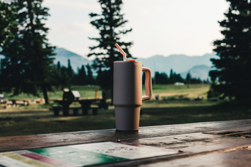 Díky pohodlné rukojeti a tenké základně se perfektně hodí do většiny držáků nápojů. Dvoustěnný vakuově izolovaný hrnek 800 ml je dodáván s víčkem bezpečným proti vylití, brčkem a silikonovou špičkou brčka. Šroubovací víčko se pyšní dvojí funkcí, nabízí pohodlnou hubici na pití nebo možnost použít brčko. Je vhodný pro teplé i studené nápoje. Hrnek je vyroben z odolné recyklované nerezové oceli. Doporučujeme mýt ručně.
