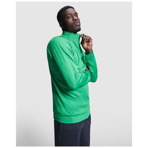 Technická látka. Raglánové rukávy. Vnitřní fleece. Límec s polovičním zipem a odpovídajícími zesílenými krytými švy. 1 × 1 žebrování na zadním límci, manžetách a spodním lemu. Odnímatelný štítek. Mikina se hodí ke kalhotám Neapolis.