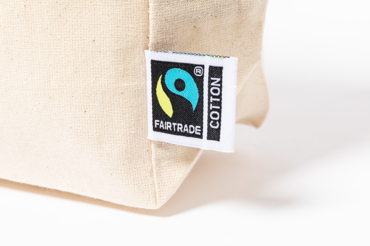Fairtrade bavlněná kosmetická taštička na zip s výraznou Fairtrade etiketou. 100% Fairtrade bavlna, 180 g/m².