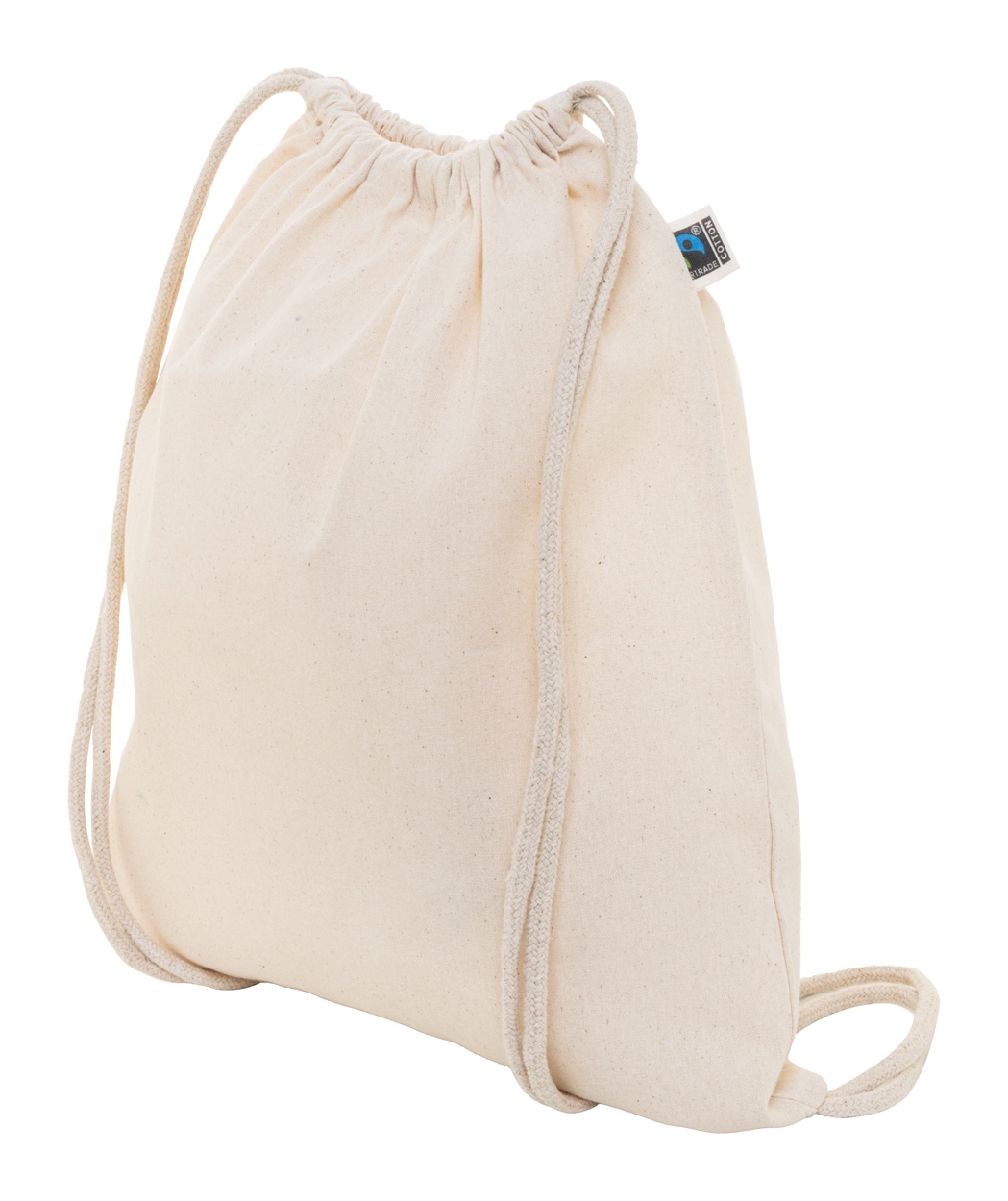 Fairtrade bavlněný vak se stahovací šňůrkou s výraznou Fairtrade etiketou. 100% Fairtrade bavlna, 180 g/m².