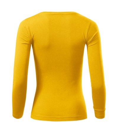 lehce vypasovaný střih s bočními švy, hlubší kulatý výstřih, úzký lem průkrčníku z žebrového úpletu 1:1 s 5 % elastanu, vnitřní část průkrčníku začištěna páskou z vrchového materiálu, zpevnění ramenních švů páskou, dlouhé rukávy