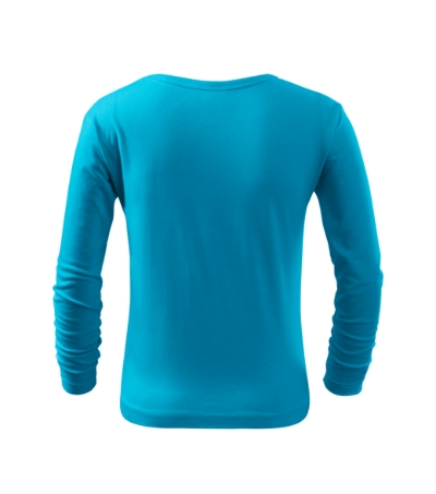 střih s bočními švy, průkrčník lemován žebrovým úpletem 1:1, zpevnění ramenních švů páskou, dlouhé rukávy