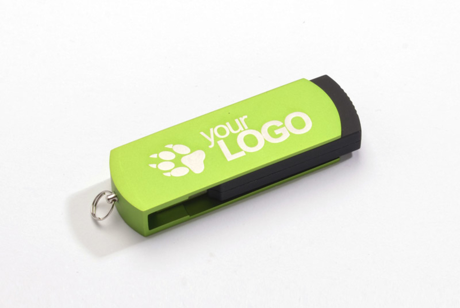 Paměťový USB flash disk o velikosti 8 GB vyrobený z plastu a kovu. Otočný kovový kryt lze tisknout na obou stranách. USB standard: 2.0; rychlost zápisu: 7 MB/s; rychlost čtení: 17 MB/s. USB flash disk má záruku výrobce po dobu 5 let a certifikát CE.