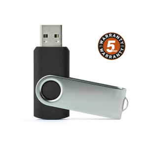 Malý 32 GB USB flash disk s kovovou a plastovou krytkou. Rotující kovová krytka může být tisknuta na obou stranách. USB standard: 2.0; rychlost zápisu: 4,5 MB/s; rychlost čtení: 12 MB/s. USB flash disk má záruku výrobce na dobu 5 let a certifikát CE.