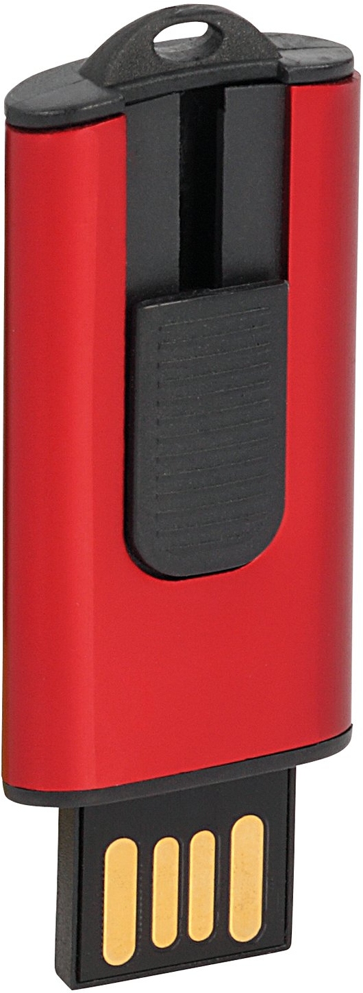 Kovový USB flashdisk s velkou plochou pro vaše logo. Konektor se z těla vysouvá, takže je chráněný, ale nemusíte mít obavu ze ztráty krytky. Tělo je kovové, konce z černého plastu. Standard USB 2.0. Očko na poutko.