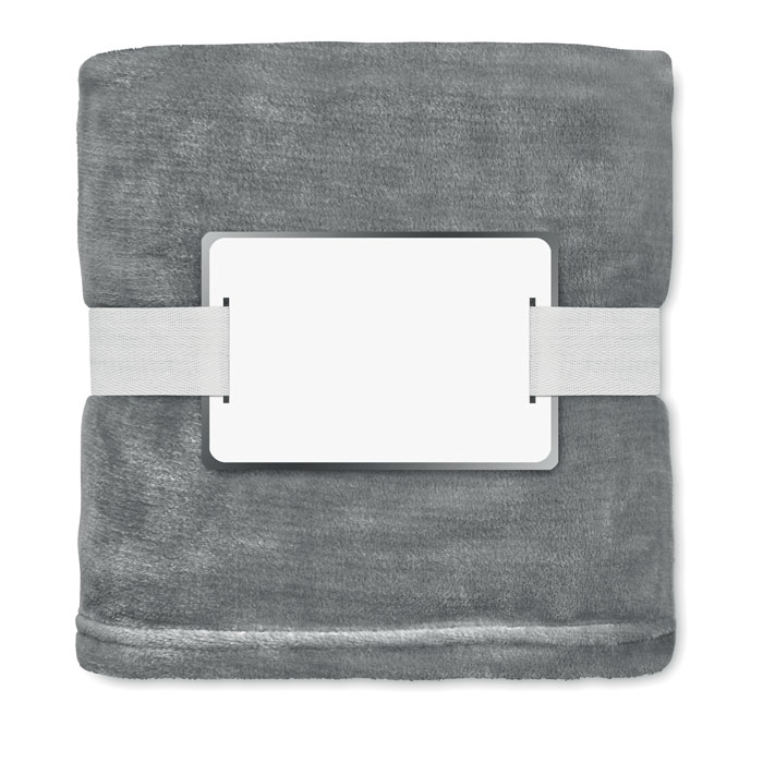 Fleecová deka RPET o gramáži 280 gr/m², přebalená stuhou s kartičkou pro potisk.