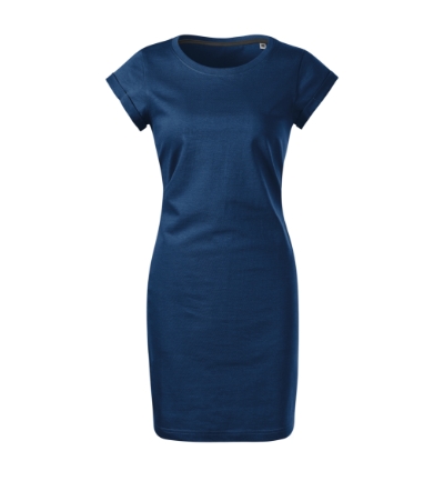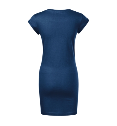 bez etikety - připraveno na rebranding, volný, lehce tvarovaný střih s bočními švy, délka nad kolena, hlubší kulatý výstřih, úzký lem průkrčníku z vrchového materiálu s 5 % elastanu, neutrální velikostní štítek v boční části průkrčníku, vnitřní část průkrčníku začištěna páskou v barvě 36, zpevňující páska od ramene k rameni, ohrnuté rukávy zachycené ve 4 bodech šitím