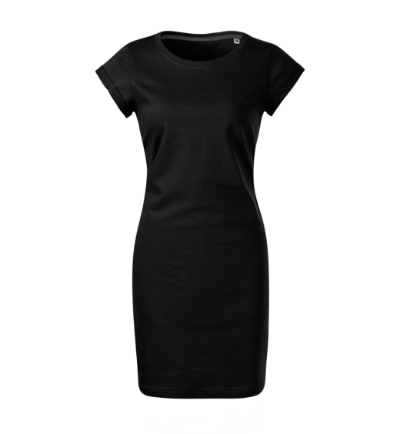 bez etikety - připraveno na rebranding, volný, lehce tvarovaný střih s bočními švy, délka nad kolena, hlubší kulatý výstřih, úzký lem průkrčníku z vrchového materiálu s 5 % elastanu, neutrální velikostní štítek v boční části průkrčníku, vnitřní část průkrčníku začištěna páskou v barvě 36, zpevňující páska od ramene k rameni, ohrnuté rukávy zachycené ve 4 bodech šitím