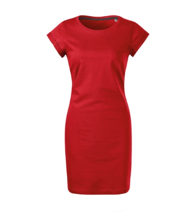 bez etikety - připraveno na rebranding, volný, lehce tvarovaný střih s bočními švy, délka nad kolena, hlubší kulatý výstřih, úzký lem průkrčníku z vrchového materiálu s 5 % elastanu, neutrální velikostní štítek v boční části průkrčníku, vnitřní část průkrčníku začištěna páskou v barvě 36, zpevňující páska od ramene k rameni, ohrnuté rukávy zachycené ve 4 bodech šitím