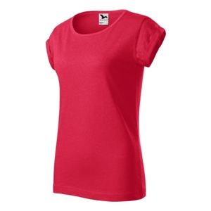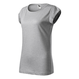 volný střih s bočními švy, průkrčník lemován vrchovým materiálem, zpevnění ramenních švů páskou, ohrnuté rukávy zachycené ve 4 bodech šitím, vhodné pro sublimační potisk (světlé barvy)