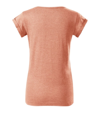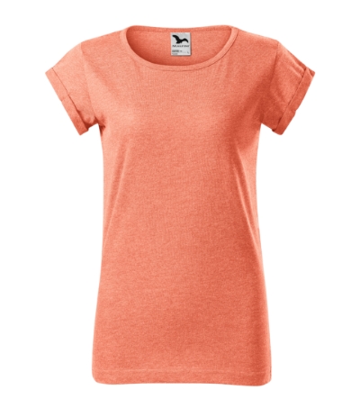 volný střih s bočními švy, průkrčník lemován vrchovým materiálem, zpevnění ramenních švů páskou, ohrnuté rukávy zachycené ve 4 bodech šitím, vhodné pro sublimační potisk (světlé barvy)