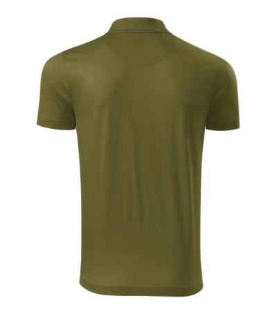 střih s bočními švy, límeček s kontrastním proužkem z žebrového úpletu 1:1, léga s 3 knoflíčky v barvě materiálu, rozparky v bočních švech s kontrastní páskou, vnitřní průkrčník začištěn kontrastní páskou, zpevnění ramenních švů páskou, bavlna zušlechtěna mercerací