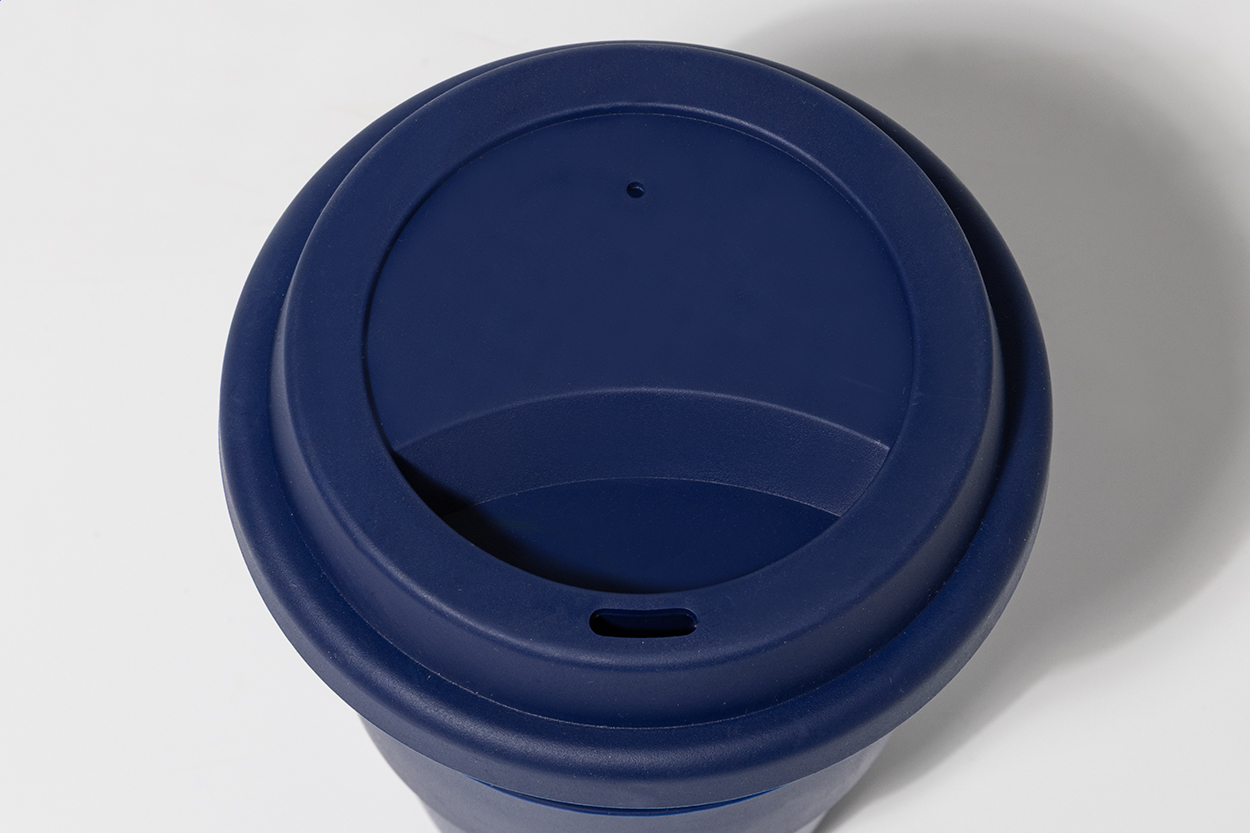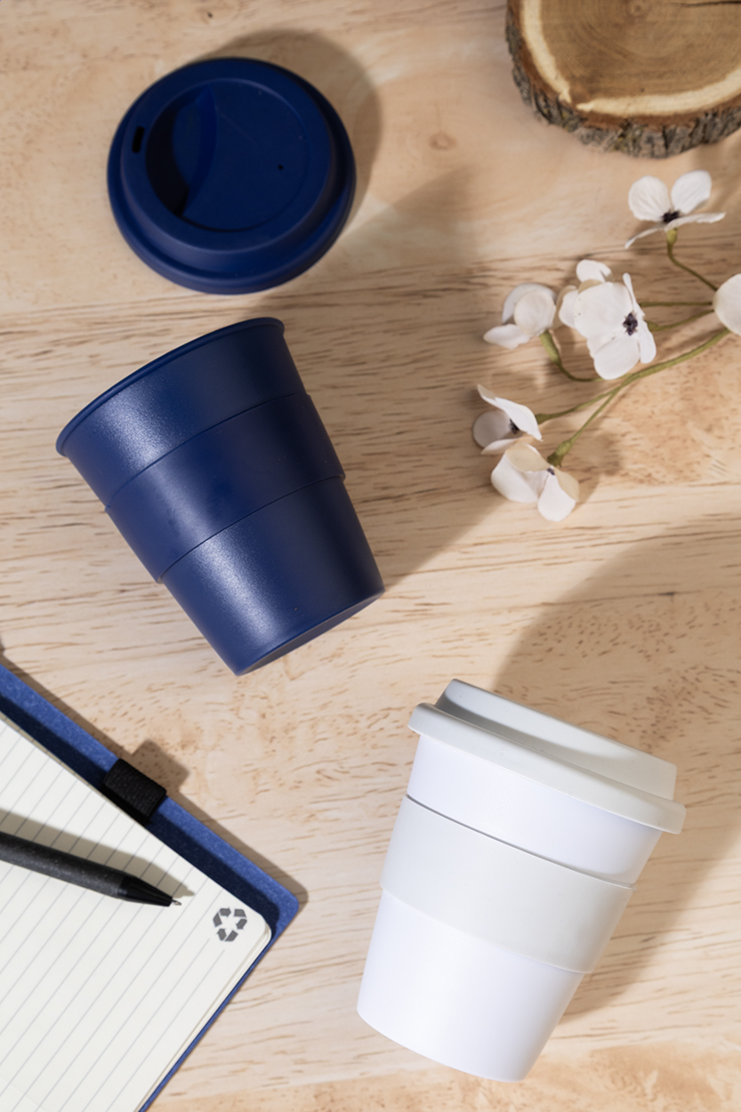 Jednostěnný cestovní kelímek z plastu PP s víčkem z TPE a úchytem. 350 ml.