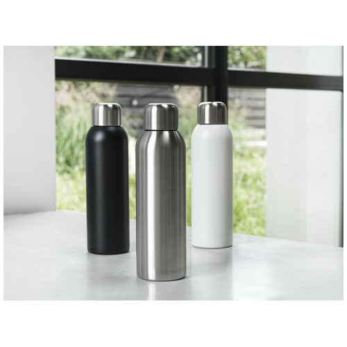 Guzzle je recyklovaná láhev na vodu s elegantním designem se šroubovacím víčkem pro snadné otevírání a zavírání. Jednostěnná láhev je ideální pro okamžiky, kdy máte velkou žízeň, protože pojme minimálně 820 ml. Láhev je vyrobena z recyklované nerezové oceli s certifikací RCS a je proto robustní s dlouhou životností. Láhev navíc nabízí dostatek možností pro jedinečné zobrazení jakéhokoli loga nebo sdělení.