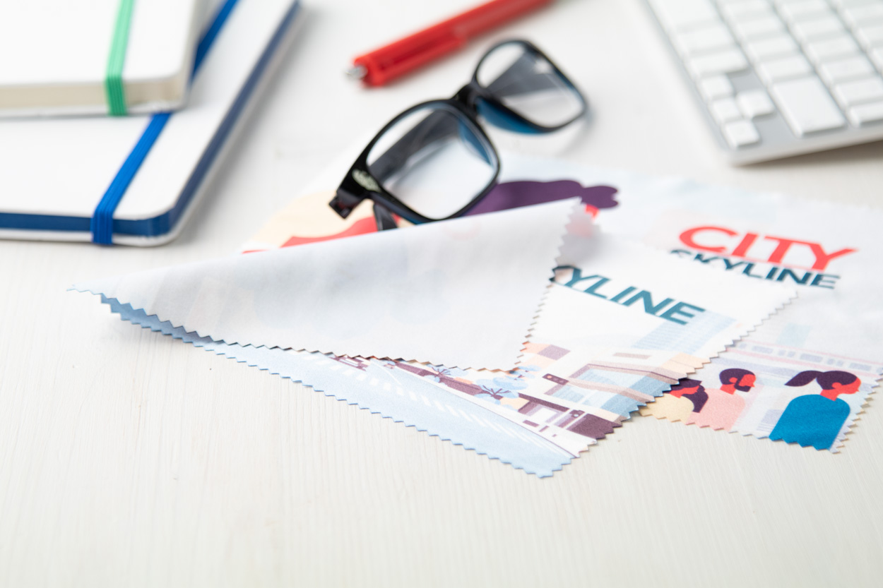 Extra velký čistící hadřík na brýle (180 g/m²) z mikrovlákna. Vyrobeno ve vlastním designu na vyžádání. Cena zahrnuje sublimační potisk, nezahrnuje tiskovou přípravu. Min. mn.: 100 ks.