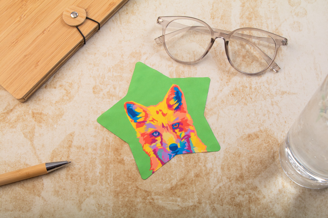 Hadřík na čištění brýlí a obrazovek na zakázku z mikrovlákna RPET (170 g/m²). Vyrábí se v jedinečném tvaru se sublimačním tištěným designem, nezahrnuje tiskovou přípravu. Min. mn: 100 ks.