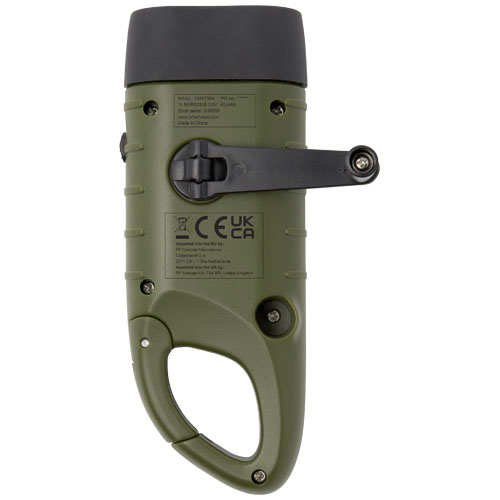 Helios svítilna na solární dynamo z recyklovaného plastu s karabinou