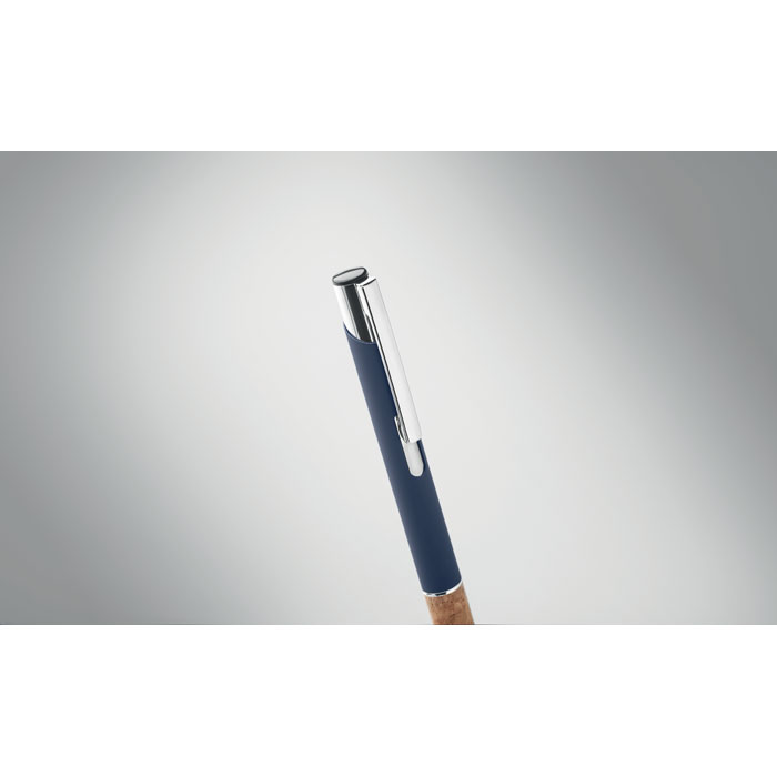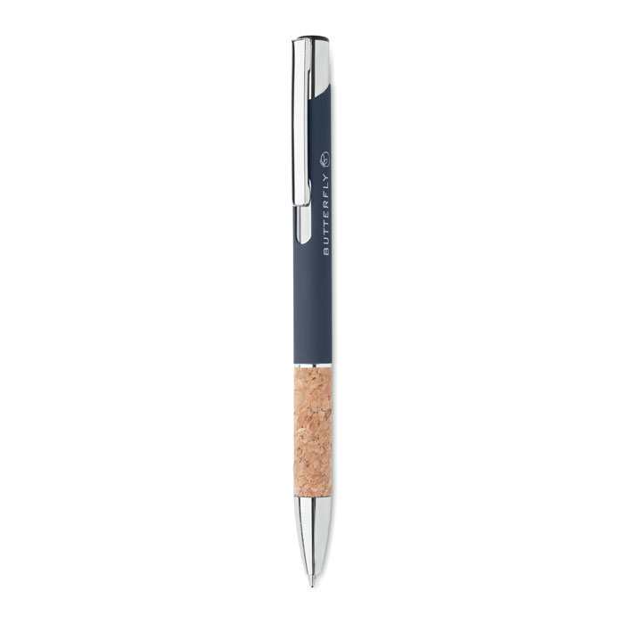 Propiska z hliníku s korkovým úchopem.Modrý inkoust.