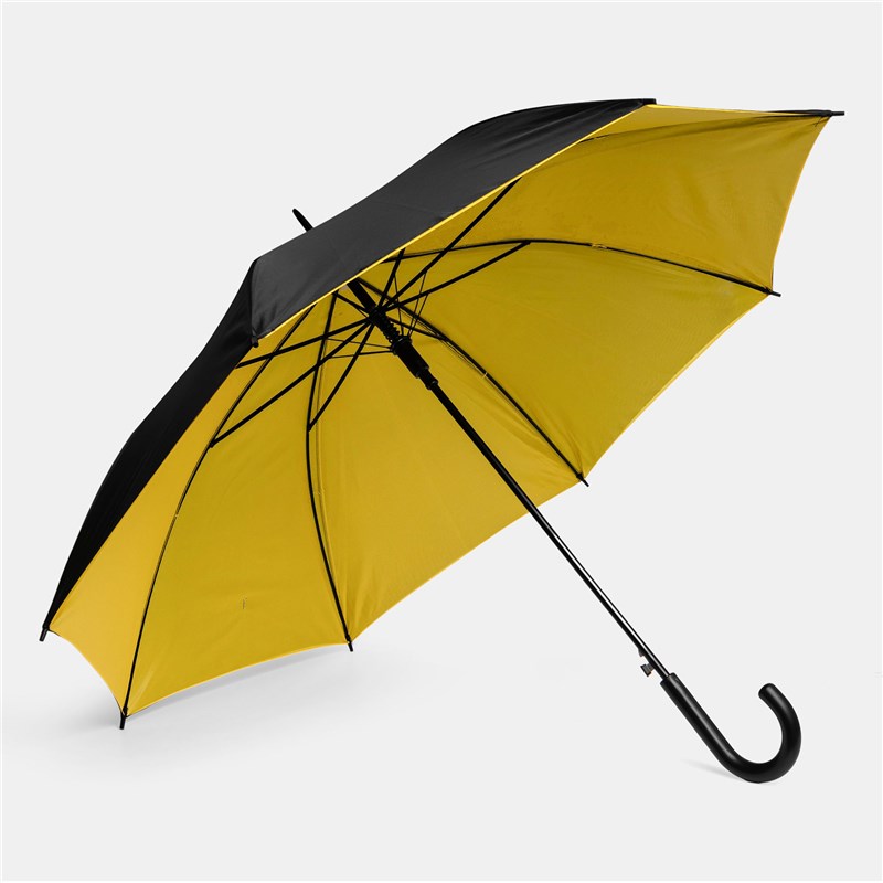Automatický holový deštník s kovovou tyčí, plastovými hroty a háčkovanou rukojetí, dvouvrstvá stříška ve 2 barvách, polyesterová stříška, zapínání na pásek se suchým zipem.