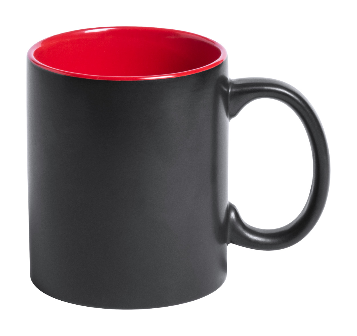 Černý keramický hrnek s barevným vnitřkem, 350 ml. Speciální povrch pro laser, kdy vygravírované logo má stejnou barvu jako vnitřek hrnku. V dárkové krabičce.